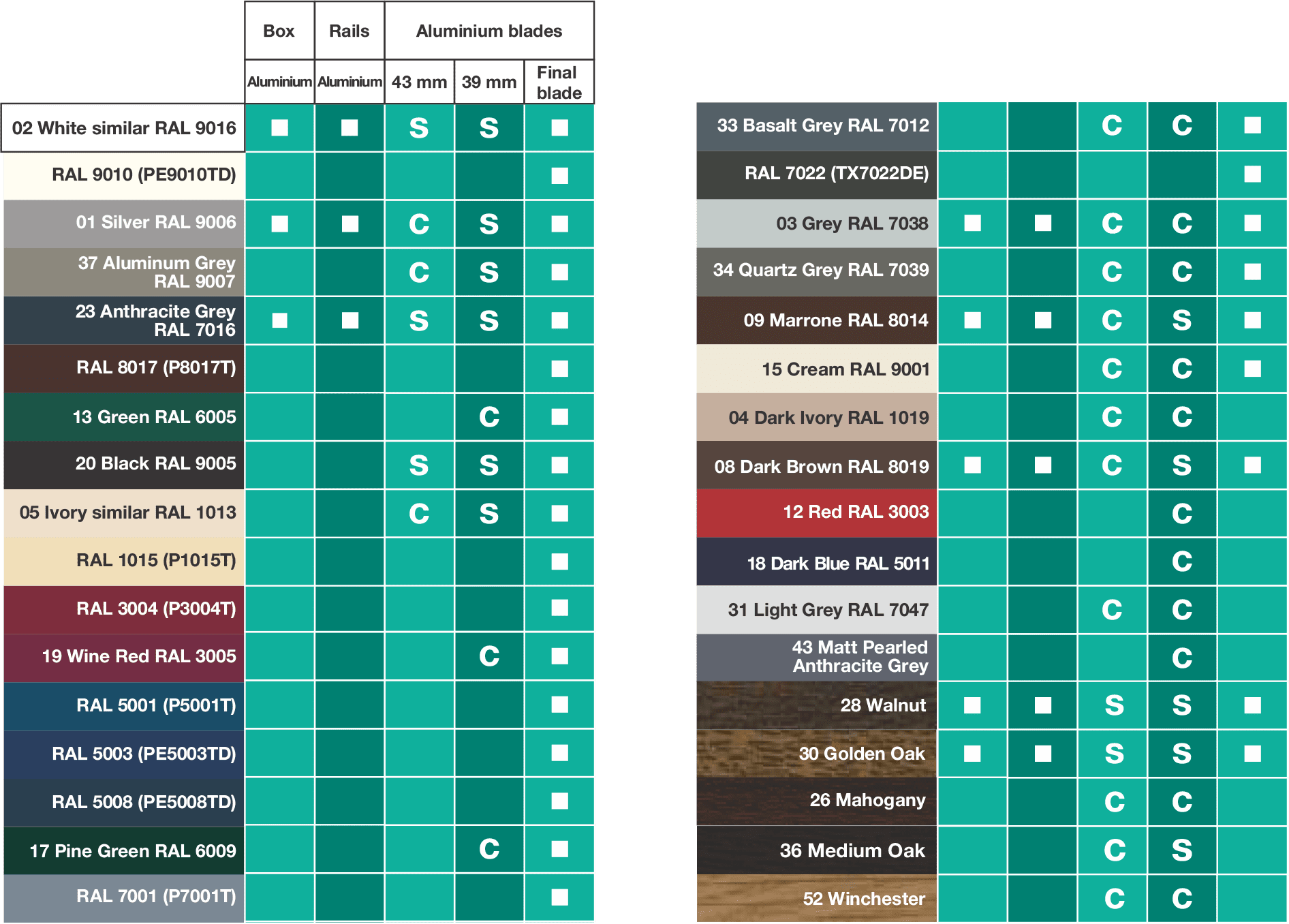 - ΔR = 0,15 (m² K)/W for 39-43mm blades - Apex-T without insect screen (for all the boxes)